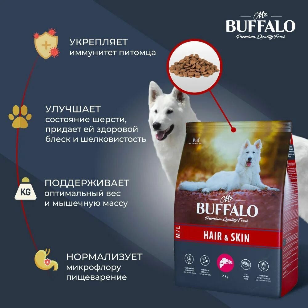 Сухой корм Mr.Buffalo HAIR & SKIN CARE для собак средних и крупных пород (лосось) 2кг информация: