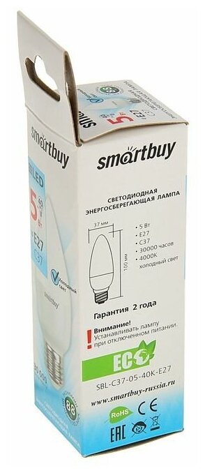 Мы выбрали 10 лучших цен на Smartbuy Лампа cветодиодная Smartbuy, E27, C37, 5 Вт, 4000 К, дневной свет. Перед тем как купить Smartbuy Лампа cветодиодная Smartbuy, E27, C37, 5 Вт, 4000 К, дневной свет посмотрите найденные предложения из Яндекс Маркета и других сайтов на основе XML фидов.