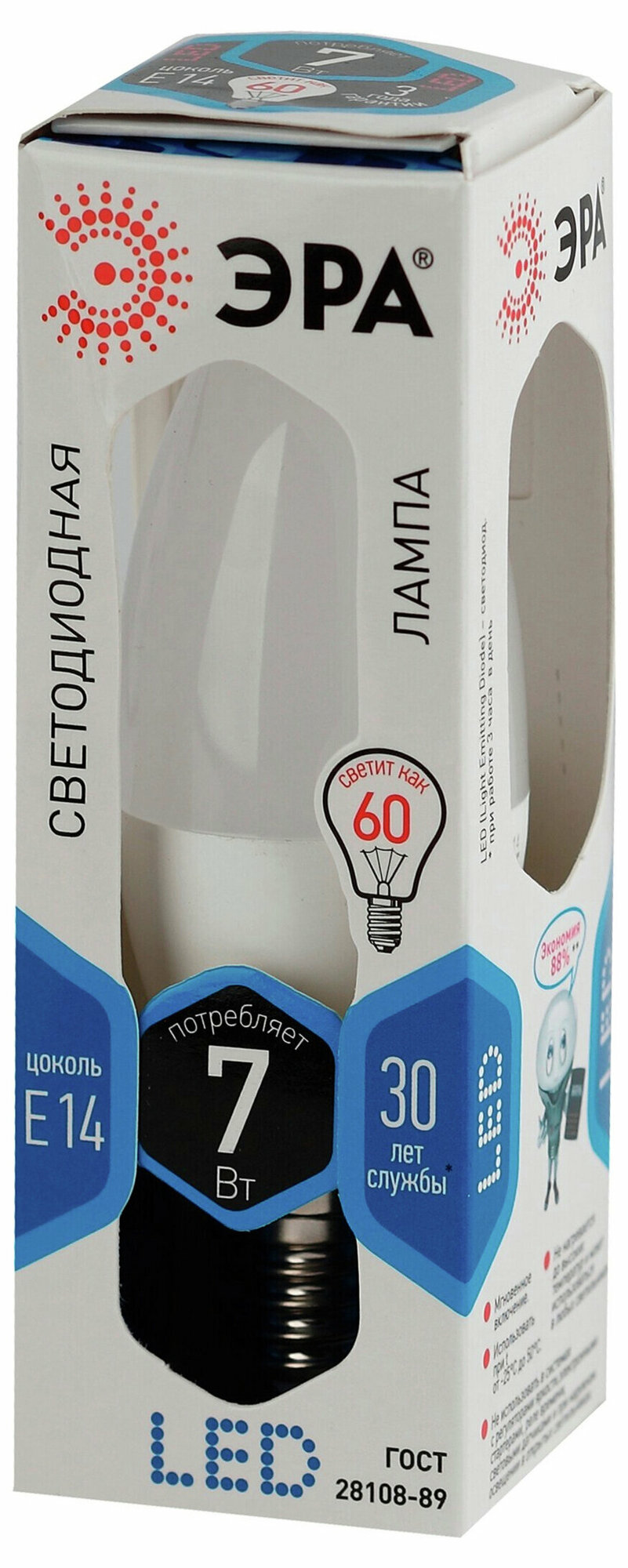 Светодиодная лампа ЭРА Стандарт Е14 7 Вт 560 лм 4000 К свеча информация: