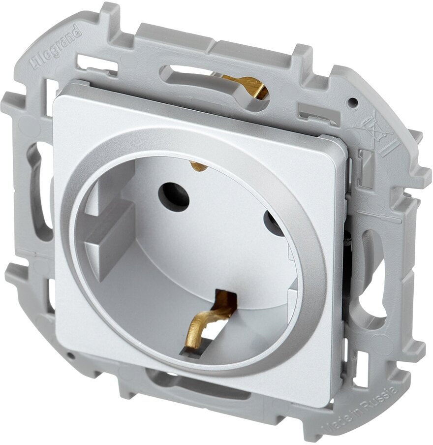 Розетка 220В с заземлением, с защитными шторками Legrand Inspiria для скрытого монтажа, цвет - алюминий