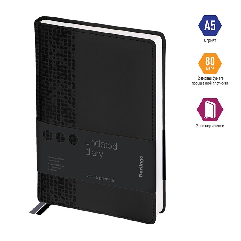 Ежедневник недатированный, A5, 160л., кожзам, Berlingo "Vivella Prestige", черный информация: