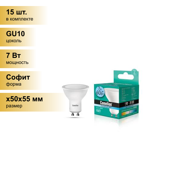 10 цен на Светодиодная лампа 7Вт 220В Camelion LED7-GU10/845/GU10 11655
