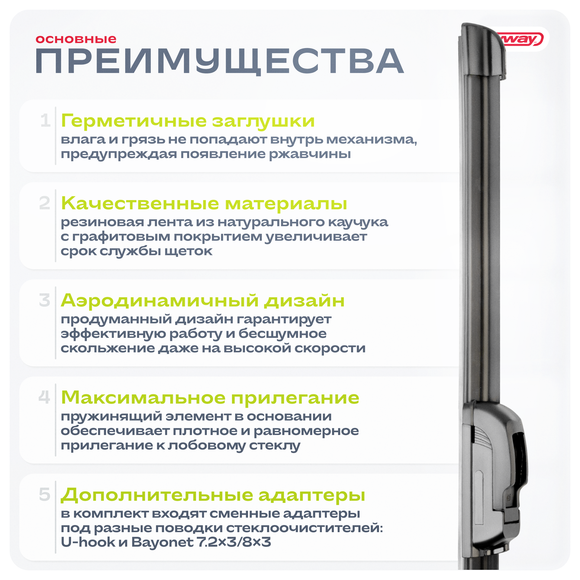 Щетка стеклоочистителя бескаркасная SKYWAY универсальный адаптер 45см/18"