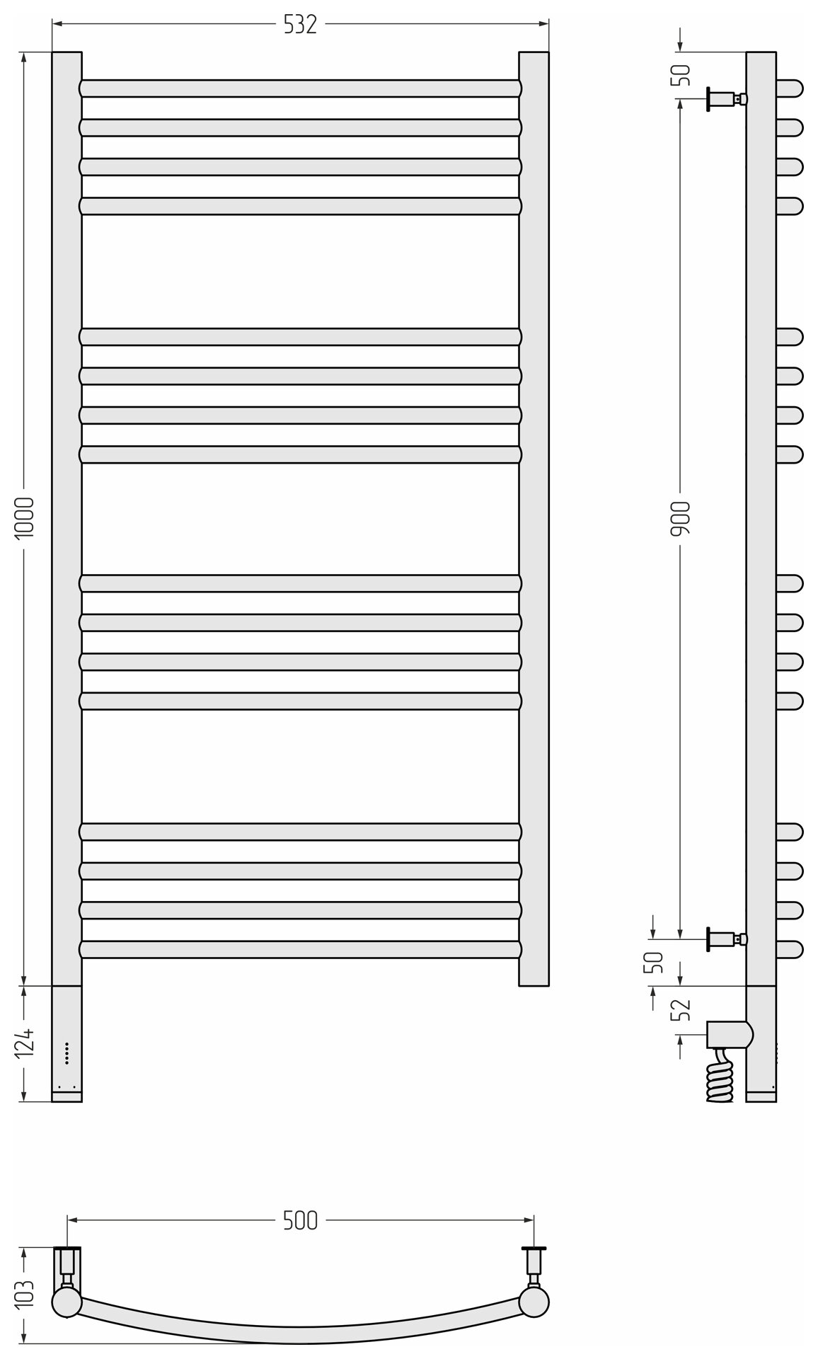 СУНЕРЖА Богема 3.0 выгнутая Полотенцесушитель 1000х500 черный матовый, МЭМ левый, 31-5802-1050