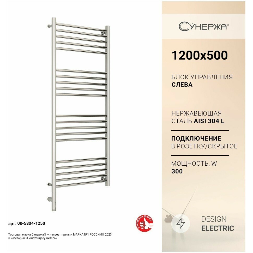 Электрический полотенцесушитель Сунержа Богема 3.0 прямая 1200х500 МЭМ левый без покрытия информация: