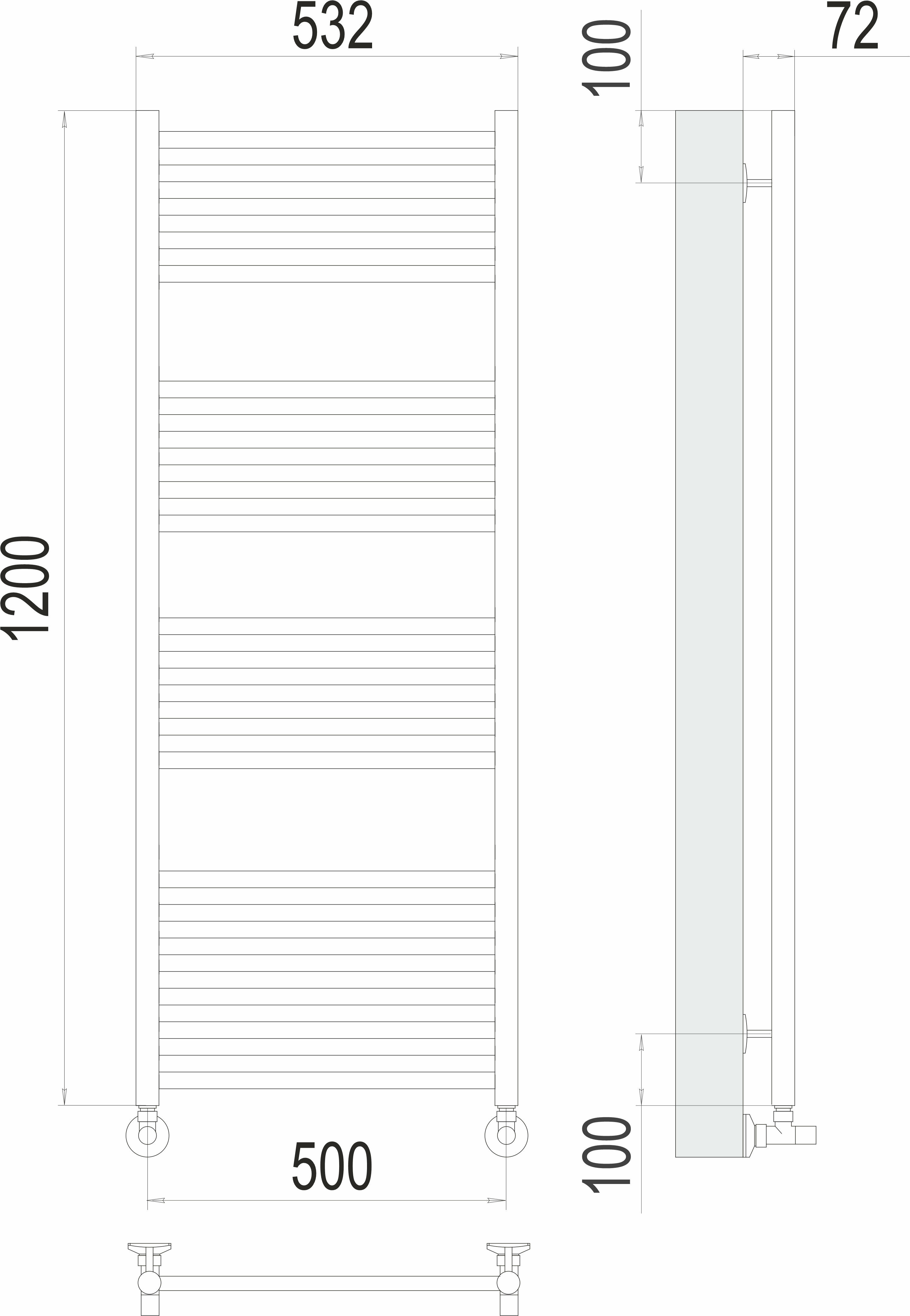 Аврора полотенцесушитель TERMINUS (532 мм / 1200 мм / 500 мм)