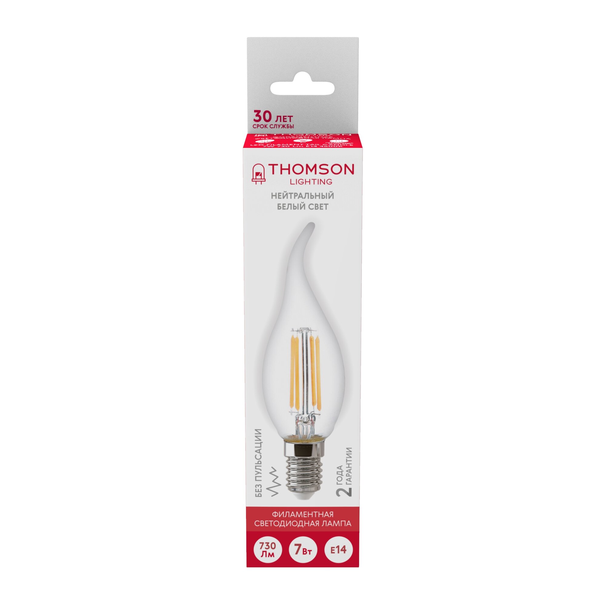 10 цен на Лампочка Thomson филаментная TH-B2076 7 Вт, E14, 4500K, свеча на ветру, нейтральный белый свет