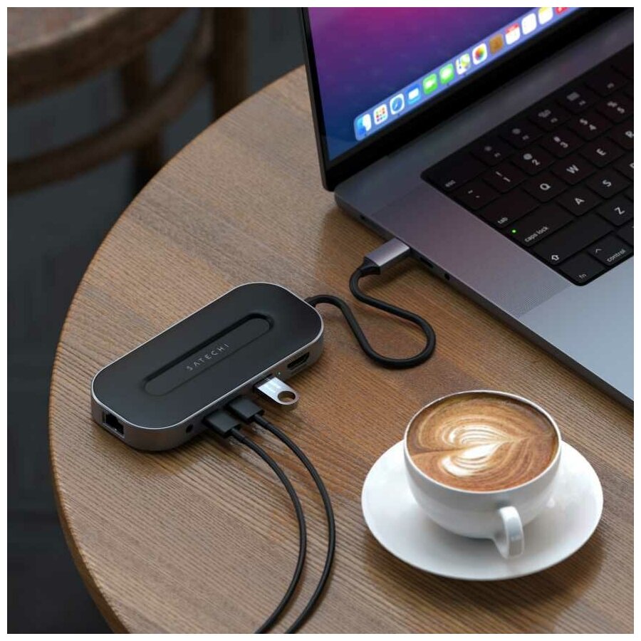 Хаб Satechi USB-C - HDMI2.1 - USB-A 3.2, USB-C 3.2, RJ45, AudioJack цвета Серый Космос (ST-U4MGEM)