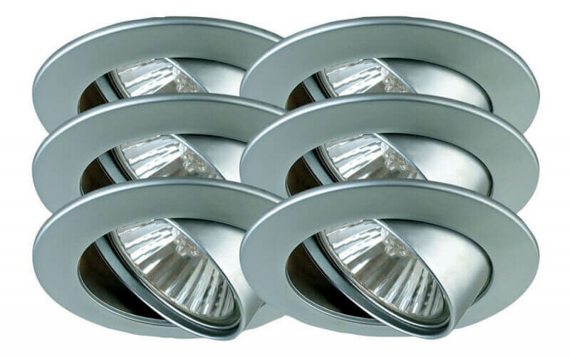 Набор светильников встраиваемых поворотных Paulmann (Германия) Premium 50Вт GU10 230В матовый хром (6 штук плюс 6 ламп)