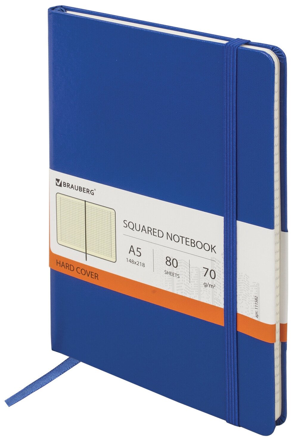 Блокнот А5 (148x218 мм), BRAUBERG "Metropolis", балакрон, 80 л., резинка, клетка, синий, 111582 Комплект - 2 шт .