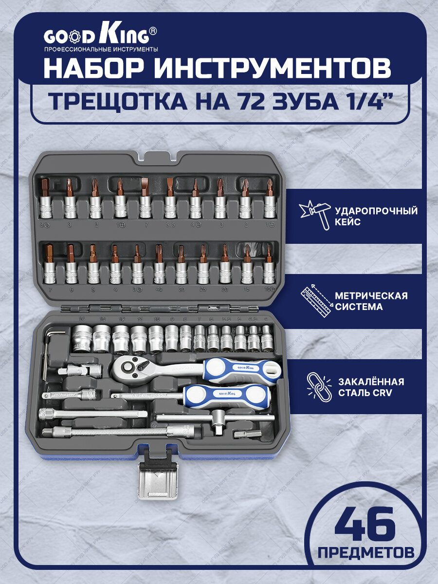 Для слесарных, ремонтных и точных работ GOODKING C-10046, 46 предм., синий, 1 уп. 1 790 ₽
