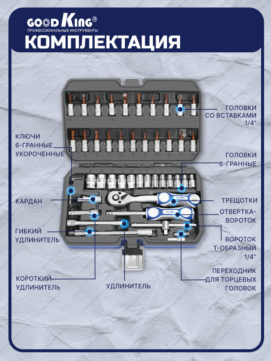 Для слесарных, ремонтных и точных работ GOODKING C-10046, 46 предм., синий информация: