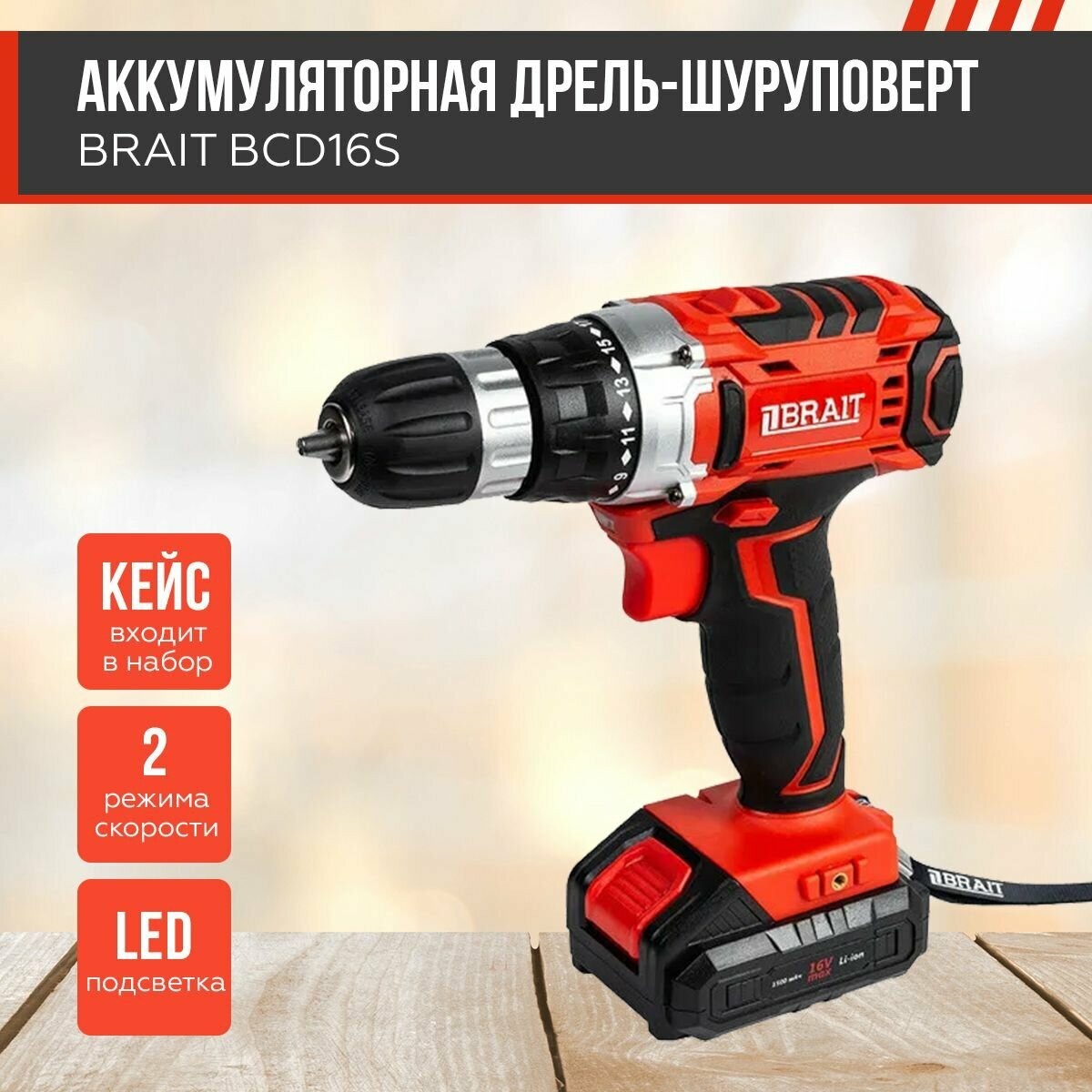 Аккумуляторная дрель-шуруповерт BRAIT BCD16S