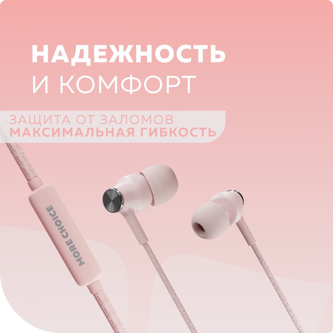 10 цен на Наушники вакуумные More choice G20 Pink AUX без рег.громкости 1.1м