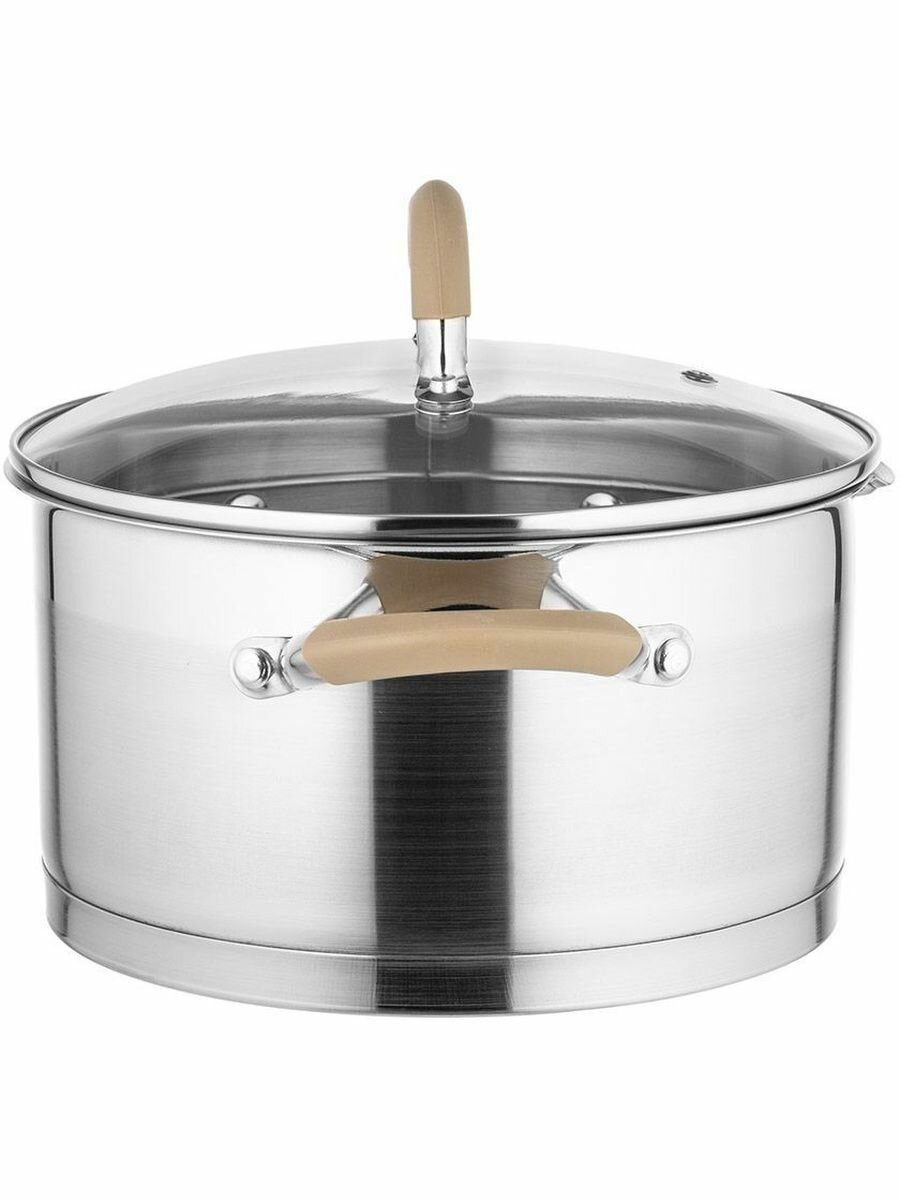 Белая калитва Кастрюля, 6 л, полусферическая, металлическая крышка, цвет хромированный