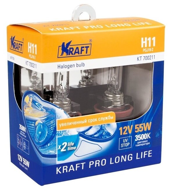 KRAFT KT 700211 Автолампа H11 12v 55w (PGJ19-2) Kraft Pro Long Life (2шт. блистер)