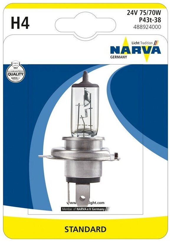 Лампа H4 24v 75/70w P43t-38 Nva (Упаковка Carton Box 1 Шт) Narva арт. 488923000 информация: