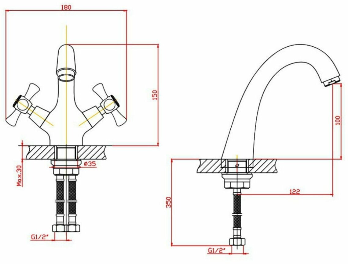 | Комплектация | смеситель - 1 шт., комплект подводки, 1 шт., набор креплений - 1 шт., инструкция - 1 шт. |