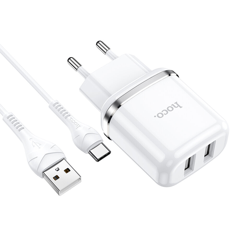 Сетевое зарядное устройство HOCO N4 Aspiring 2xUSB с Кабелем USB - Type-C, 2.4A, белый информация:
