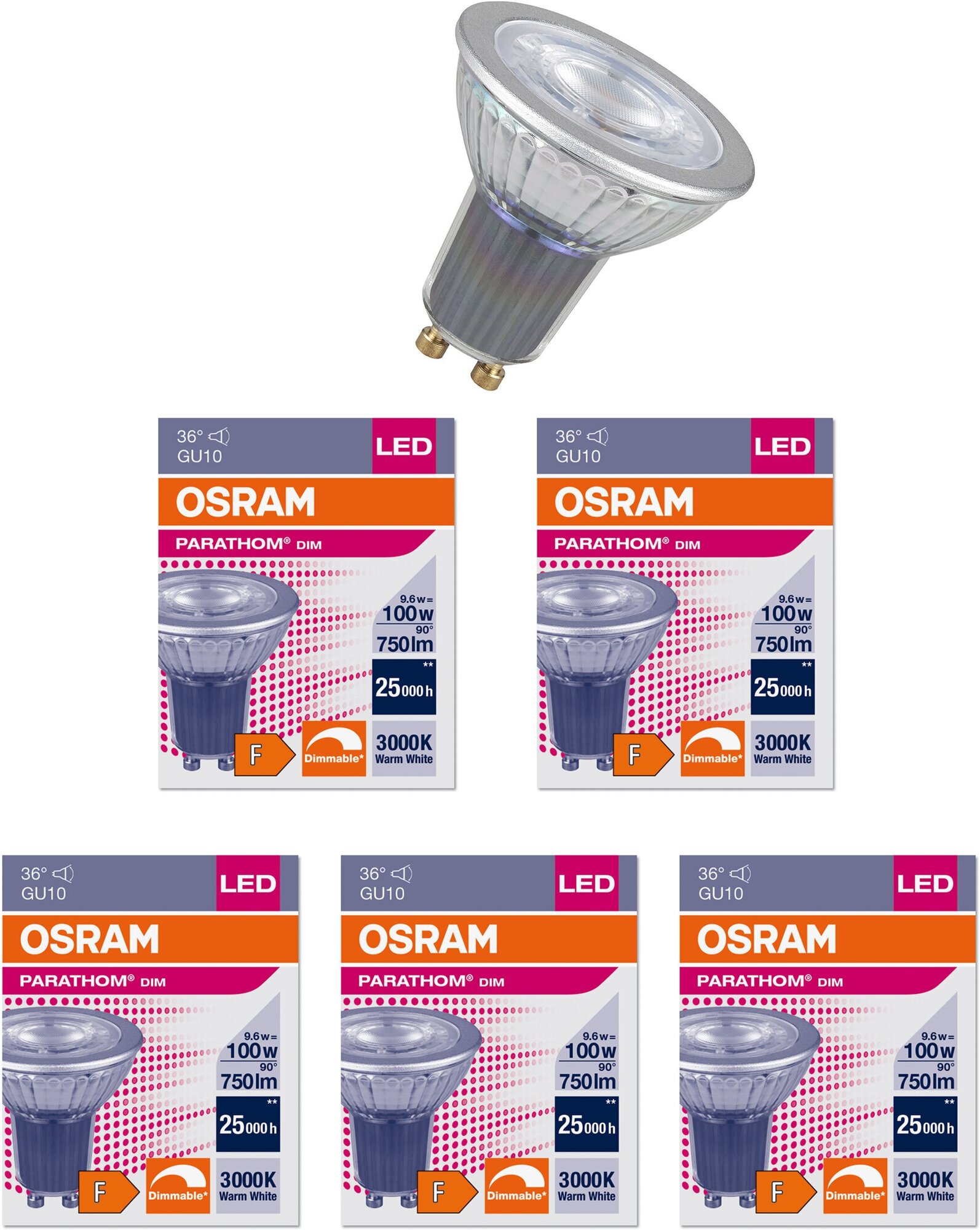 Отзывы на Лампа светодиодная OSRAM 9.6W=100W 220V Софит PARATHOM GU10 PAR16 750Лм Диммируемая угол 36° 3000К Ra≥90 Теплый белый, уп. 5шт