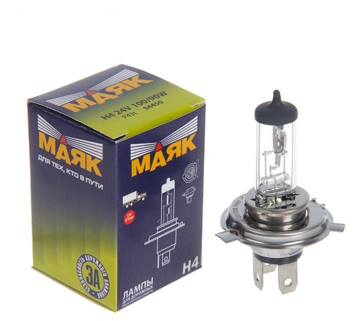 Лампа 12 В H4 100/90 Вт Р43 галогенная Маяк маяк 52450 | цена за 1 шт