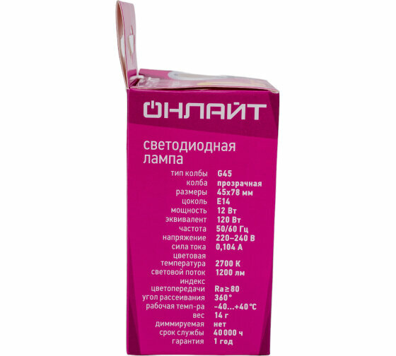 Отзывы на Лампа светодиодная филаментная 80 890 OLL-F-G45-12-230-2.7K-E14 12Вт шар прозрачная 2700К тепл. бел. E14 1200лм 220-240В 80890 онлайт