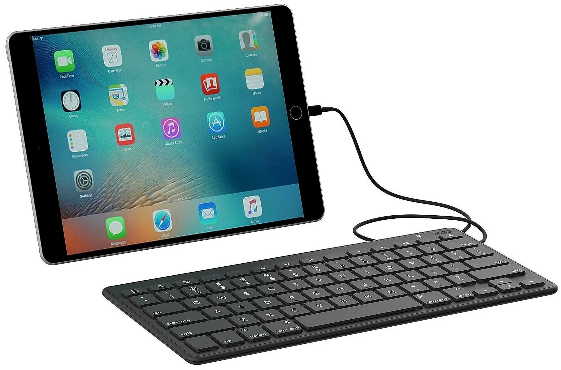 Универсальная клавиатура ZAGG Universal Wired Lightning Keyboard. Подключение через кабель Lightning (MFi-certified). Длина кабеля: 45 см. Цвет: черный.