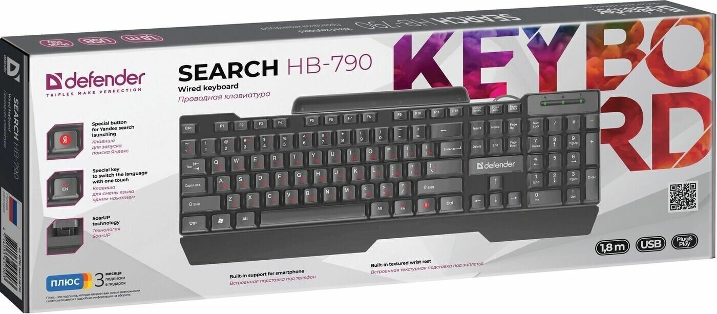 Defender Клавиатура проводная Search HB-790 RU, классическая раскладка 104 клавиши, USB 1.8м информация: