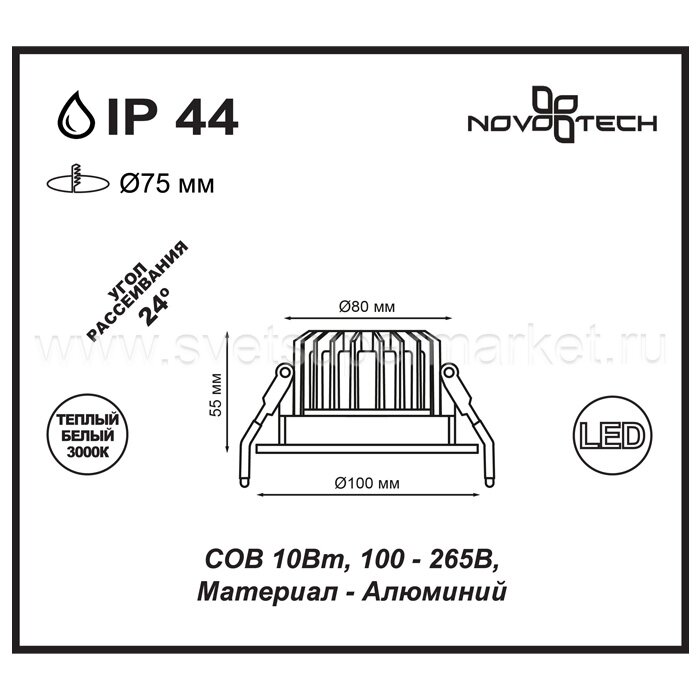 10 цен на Novotech Встраиваемые влагозащищенные светильники с интегрированным светодиодом Novotech Влагозащищенный встраиваемый светодиодный светильник Drum Novotech 357602