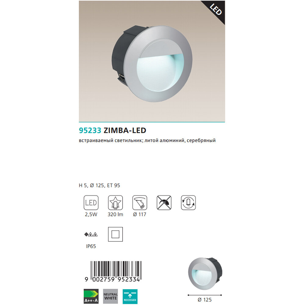 95233 Уличный светодиодный светильник встраиваемый EGLO ZIMBA-LED информация: