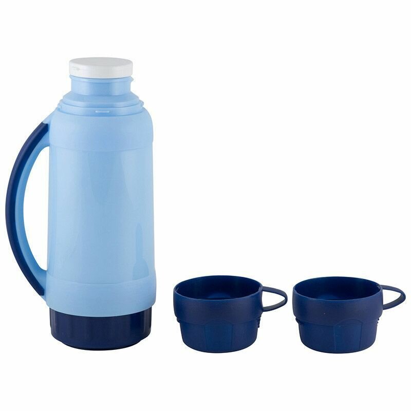 Термос в пластиковом корпусе со стеклянной колбой PRATICO, 1,0 л. (2 чашки), синий