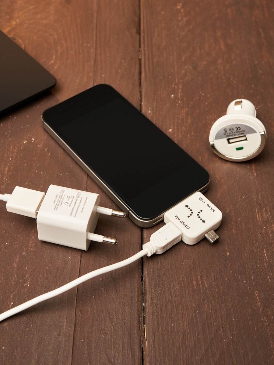 Комплект Сзу, Азу, кабель miniUSB-USB, переходник microUSB 30 pin белый 18-1197 . 890 ₽