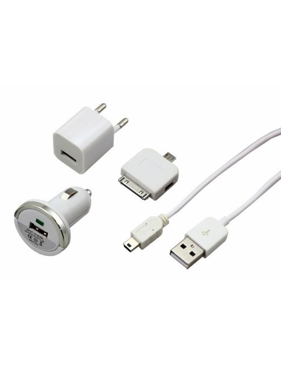 Комплект СЗУ, АЗУ, кабель miniUSB-USB, переходник microUSB 30 pin белый Артикул 18-1197 (10_шт)