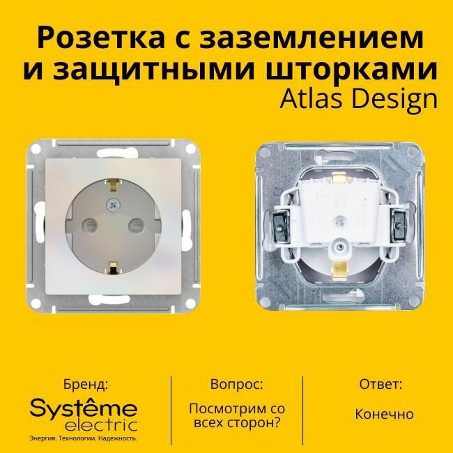 Отзывы на Розетка ATLASDESIGN, скрытый монтаж, с заземлением, со шторками, жемчуг | код. ATN000445 | Schneider Electric (5шт.в упак.)