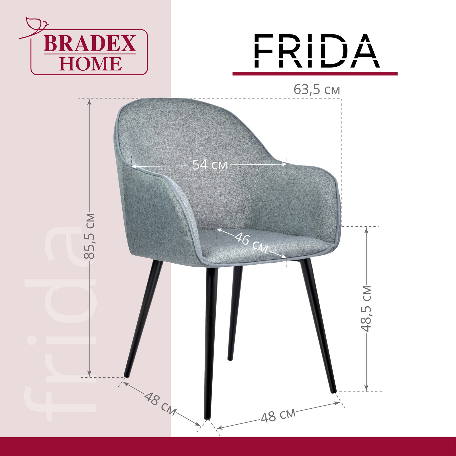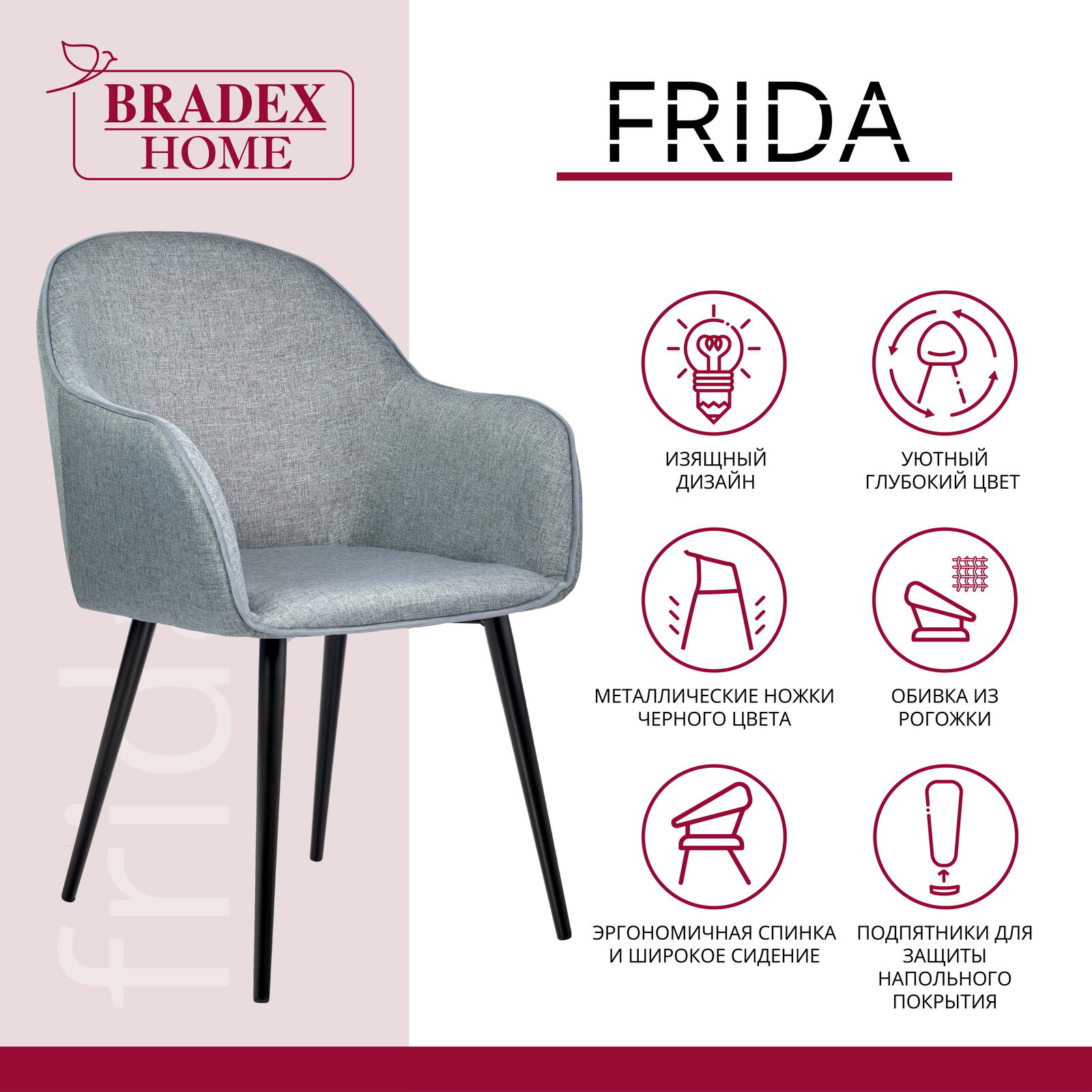 Стул кресло для кухни мягкий обеденный со спинкой и с подлокотниками рогожка Frida серо-синий информация:
