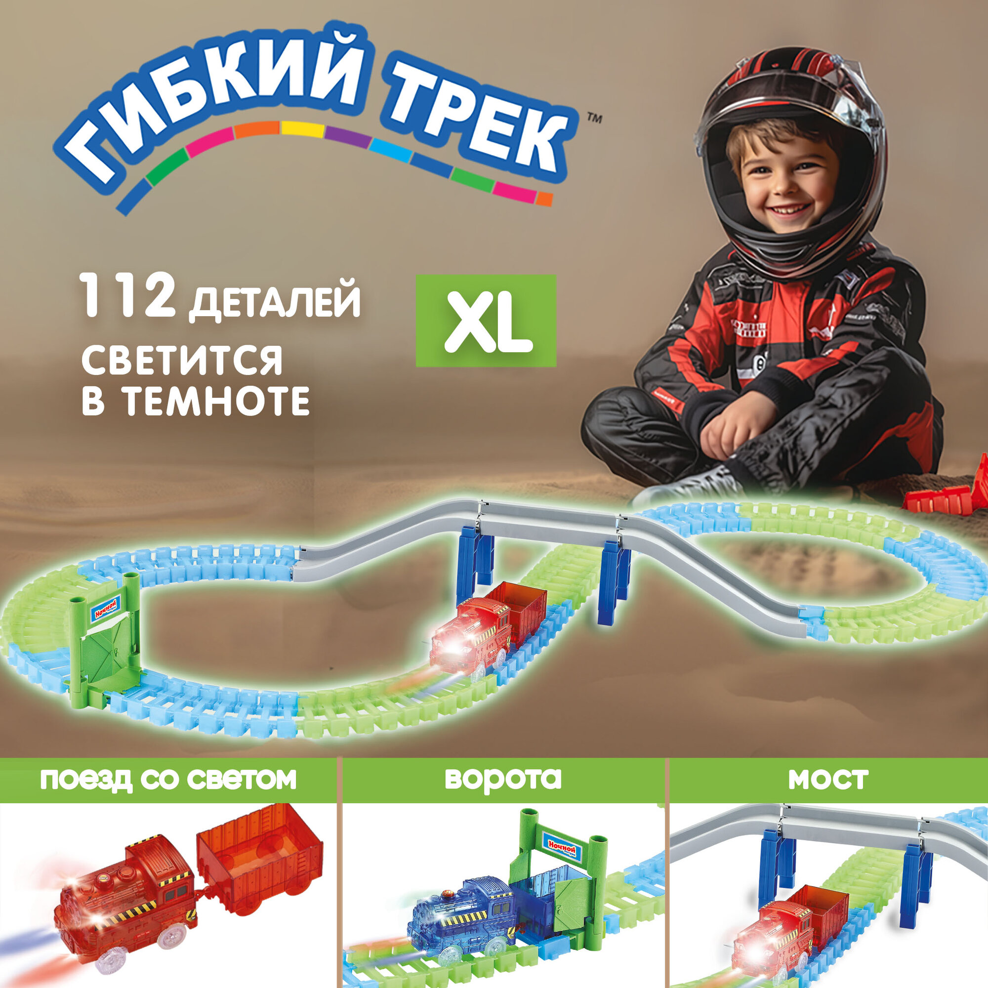 Гибкий трек "Ночной Экспресс", мост, ворота, 112 дет, дорога светится в темноте (Т13191)