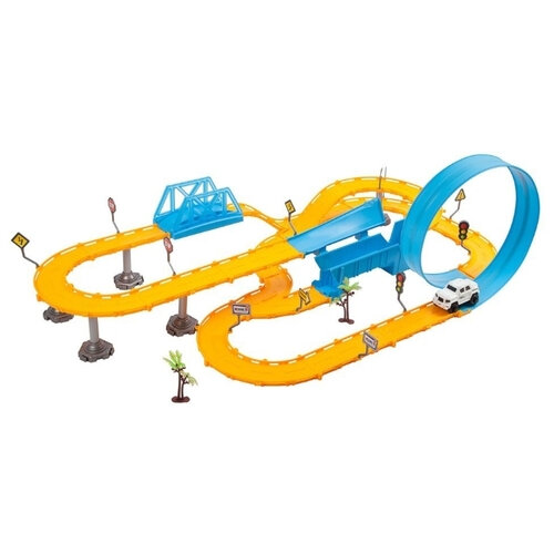 | Комплектация | - элементы трека; - дорожные знаки; - наклейки для дорожных знаков; - машинка; - пальма 2 шт.. |