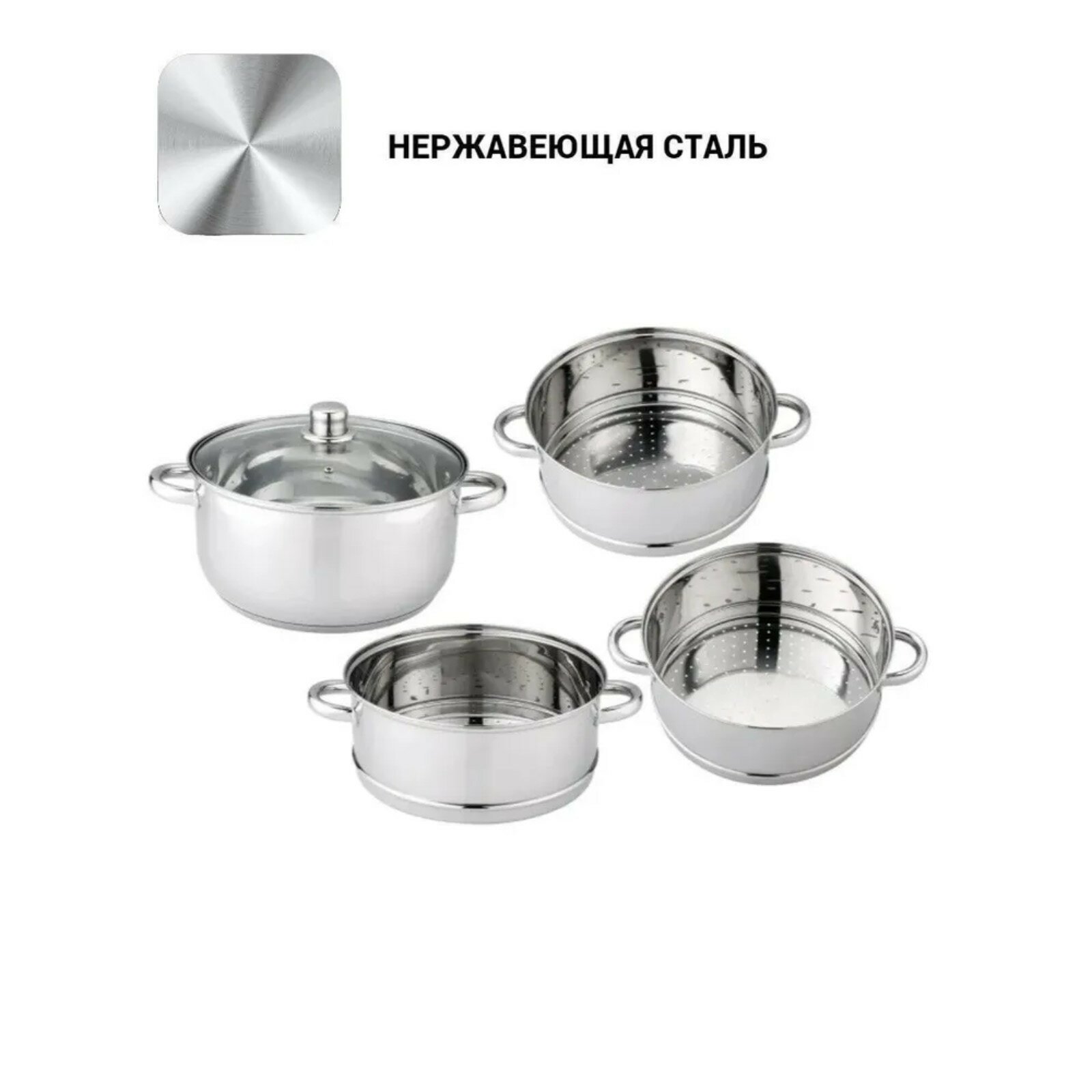 Белая калитва Кастрюля, 6 л, полусферическая, металлическая крышка, цвет хромированный