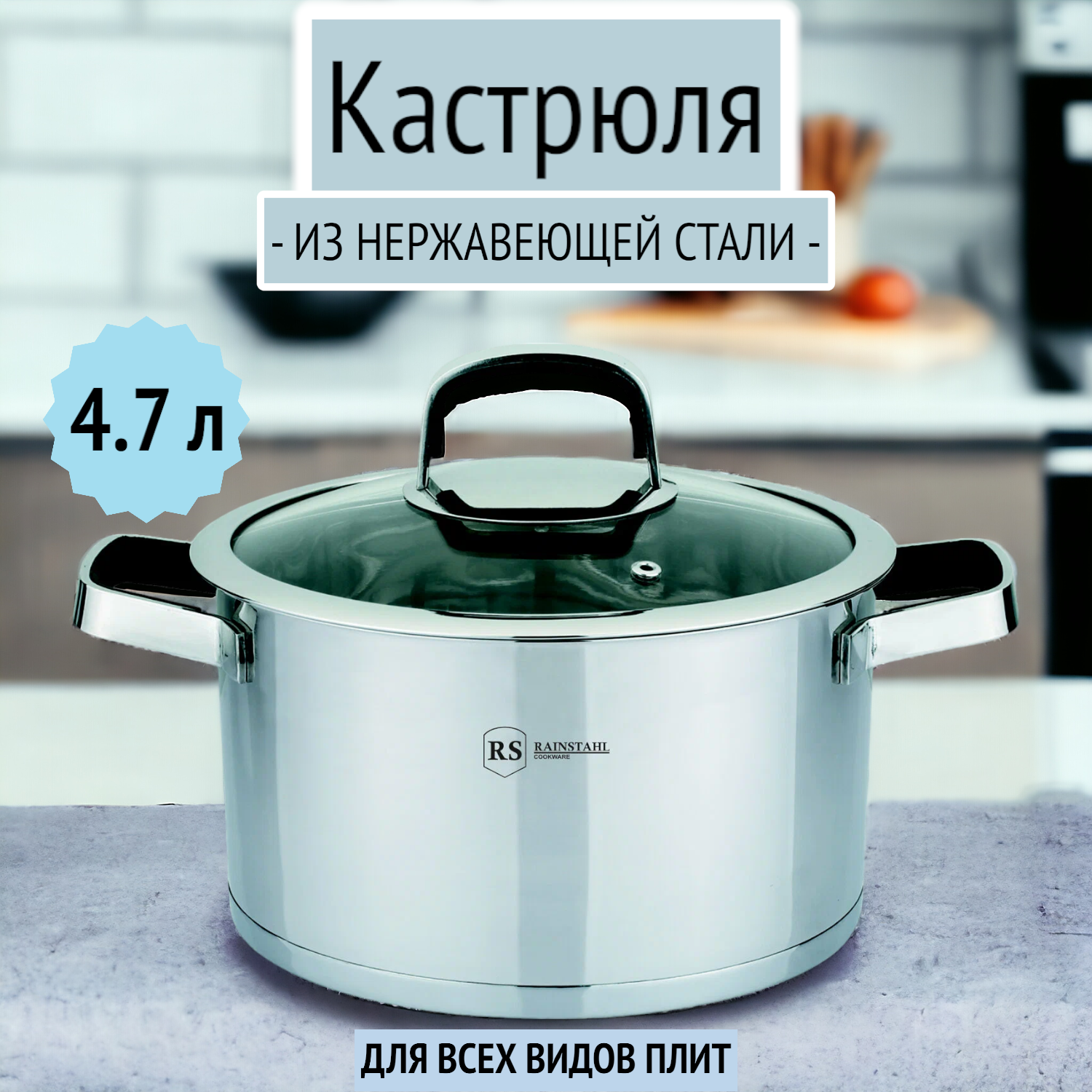 10 цен на Кастрюля 4.7 л из нержавеющей стали со стеклянной крышкой Rainstahl, RS/CS 2910-22