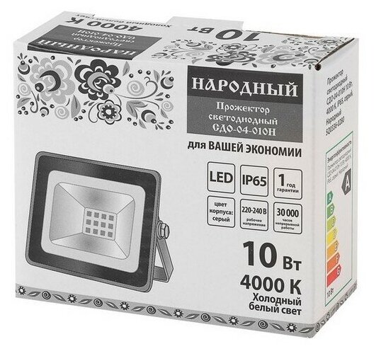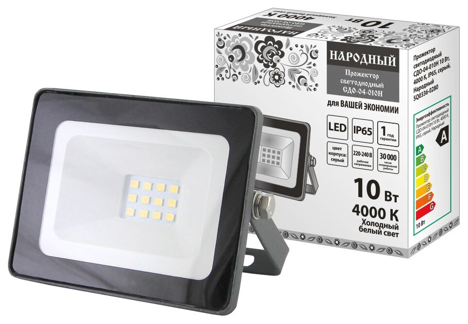 Отзывы на TDM Прожектор светодиодный СДО-04-010Н 10 Вт, 4000 К, IP65, серый, Народный SQ0336-0280
