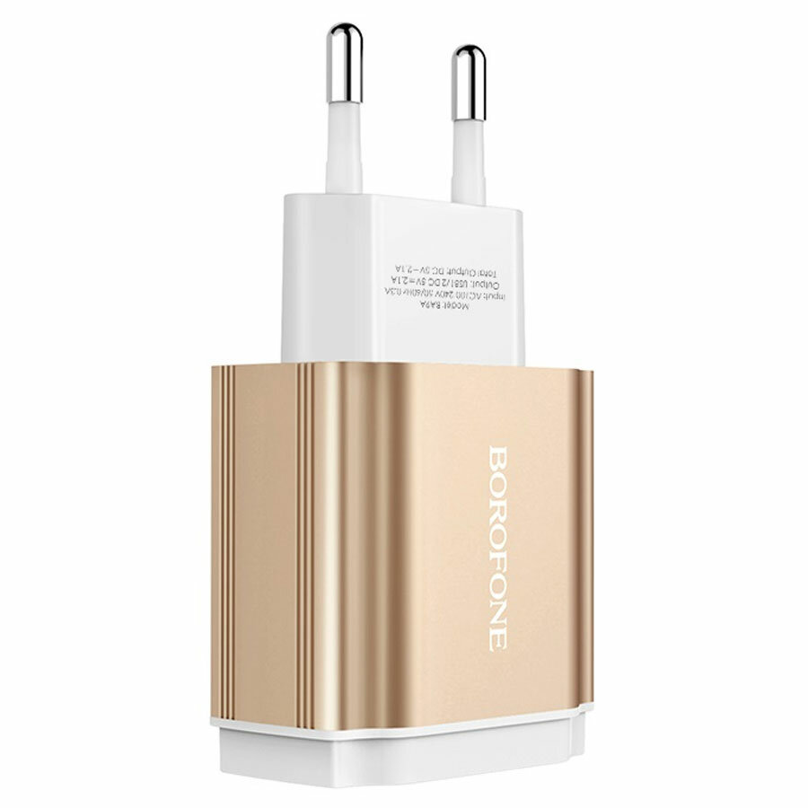 10 цен на Сетевое зарядное устройство BOROFONE BA9A FreePlug 2xUSB, 2.1A, золотой