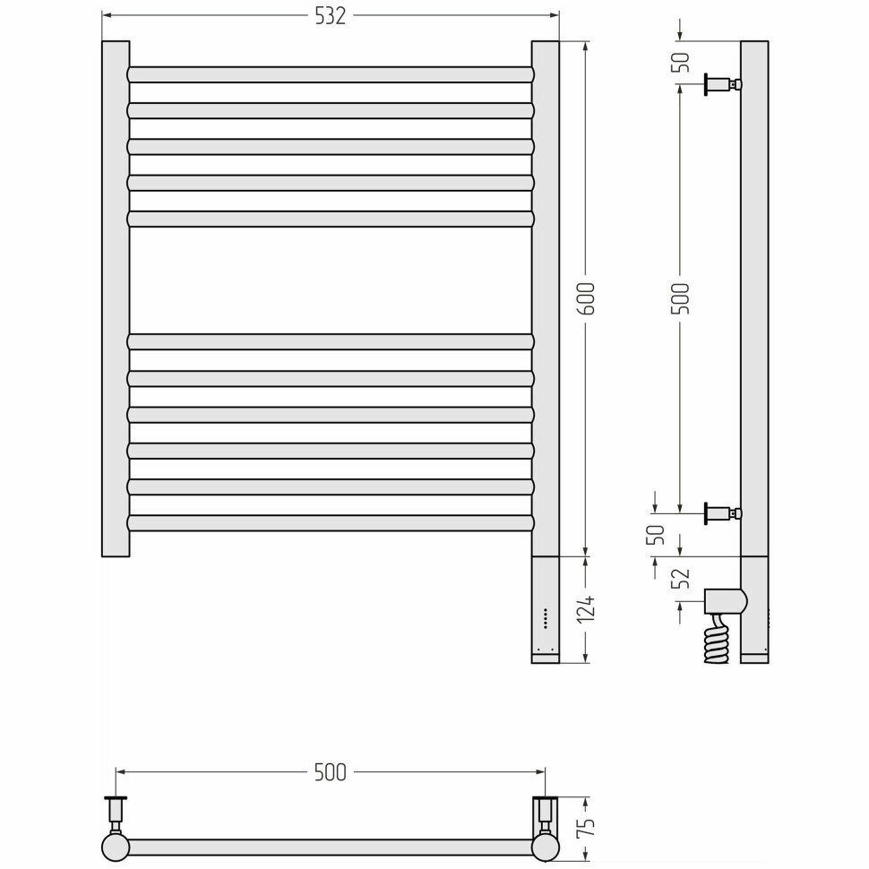 Полотенцесушитель электрический Сунержа Богема 3.0 прямая 600х500 МЭМ правый Без покрытия