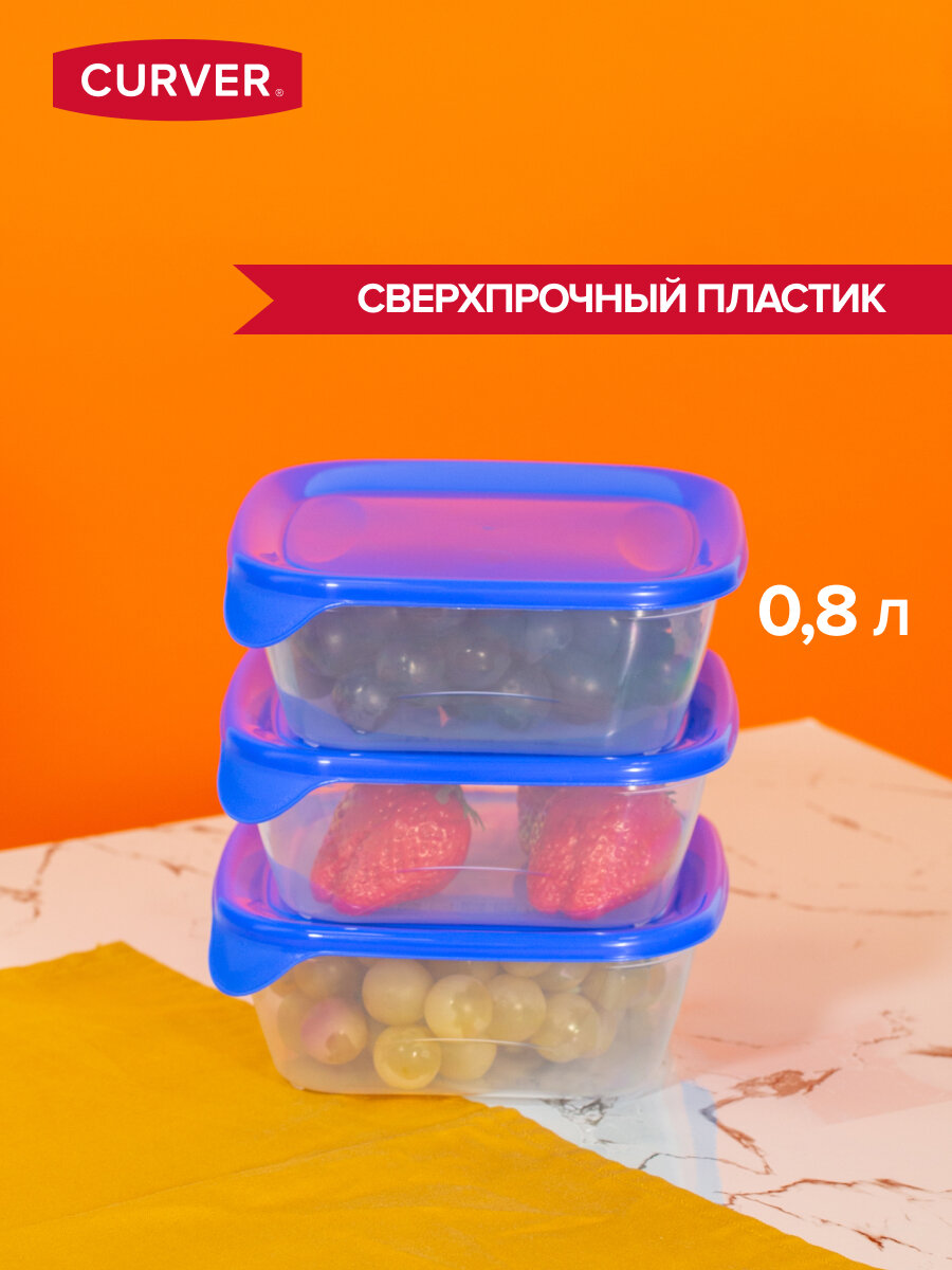 10 цен на Набор контейнеров для СВЧ FRESH&GO 3х0.8л голубые квадратные