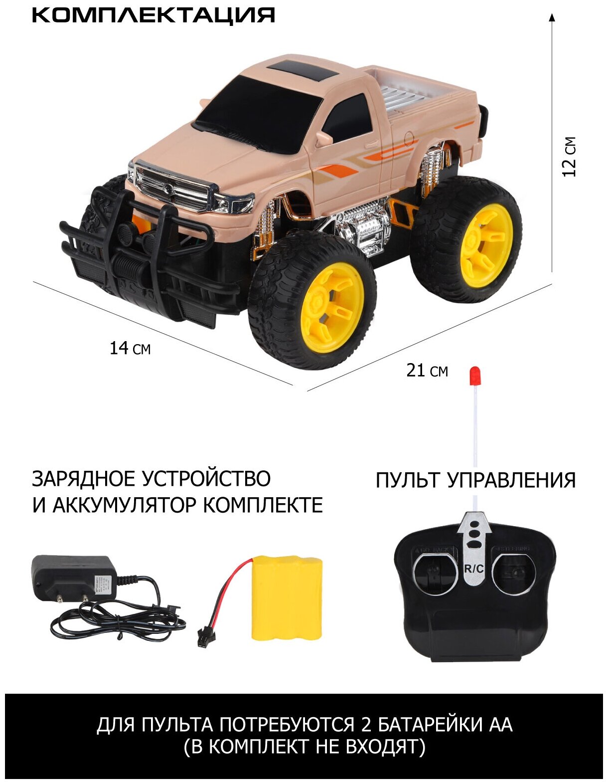 10 цен на Радиоуправляемая машинка ТМ AUTODRIVE, Монстр-трак, движение вперед/назад/повороты, для детей, для мальчиков, пульт управления, светло-коричневый