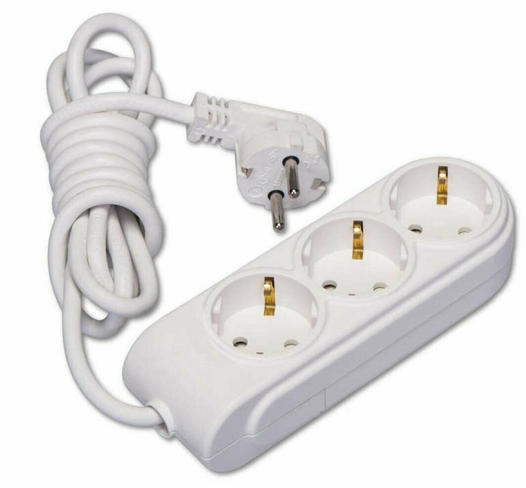Удлинитель бытовой (N3210063) c заземлением 5 м 16 А 250 В 2,2 кВт 3 розетки ПВС 3х1 мм2 IP20 белый
