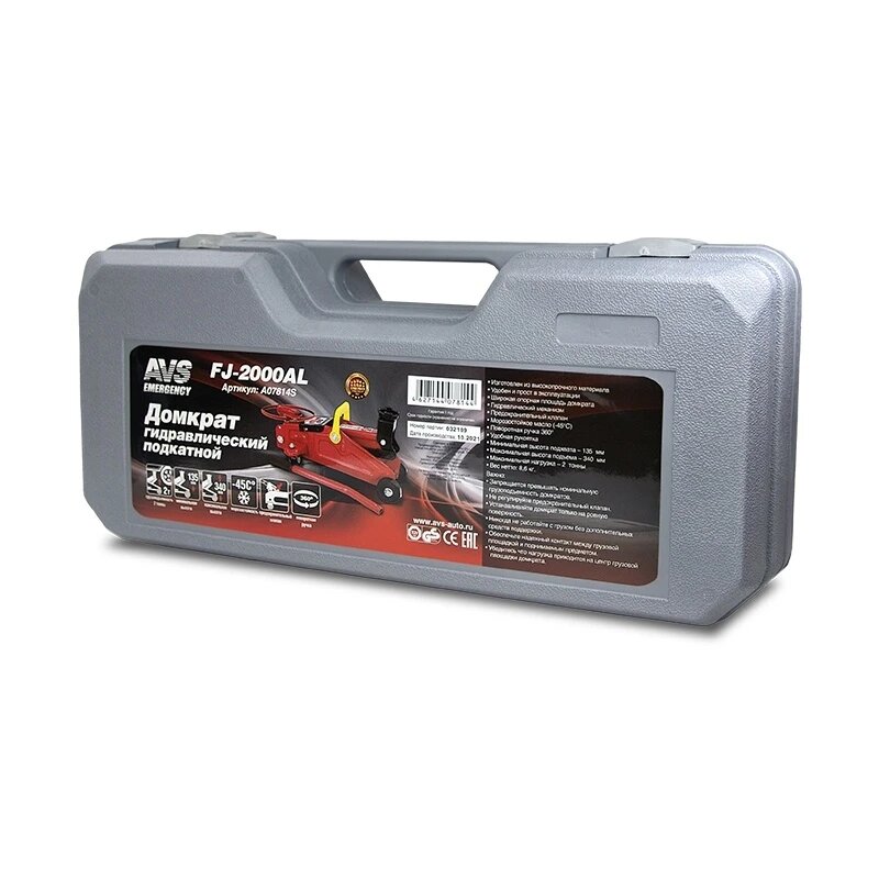 Домкрат подкатной AVS FJ-2000AL (поворотная ручка 360 градусов), 2т, 135-340мм. в кейсе информация: