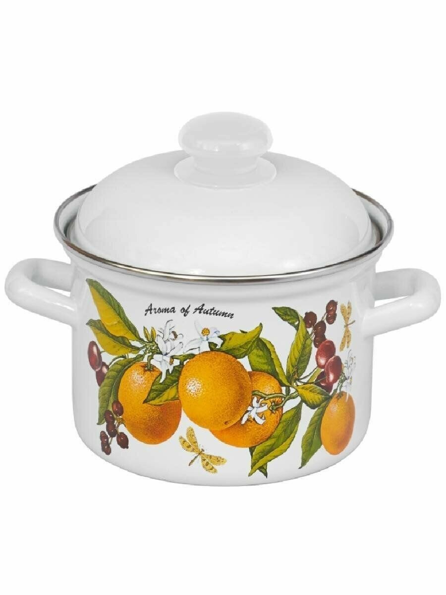 Кастрюля эмалированная 1,5 л с ободком белая с рисунком Фруктовая фантазия
