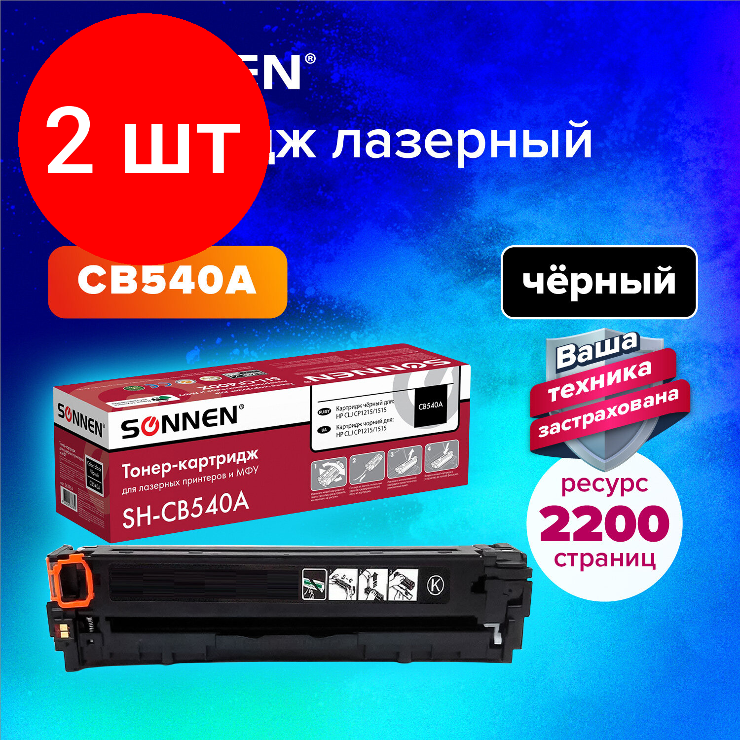 Комплект 2 шт, Картридж лазерный SONNEN (SH-CB540A) для HP СLJ CP1215/1515 высшее качество черный, 2200 стр. 363954 информация: