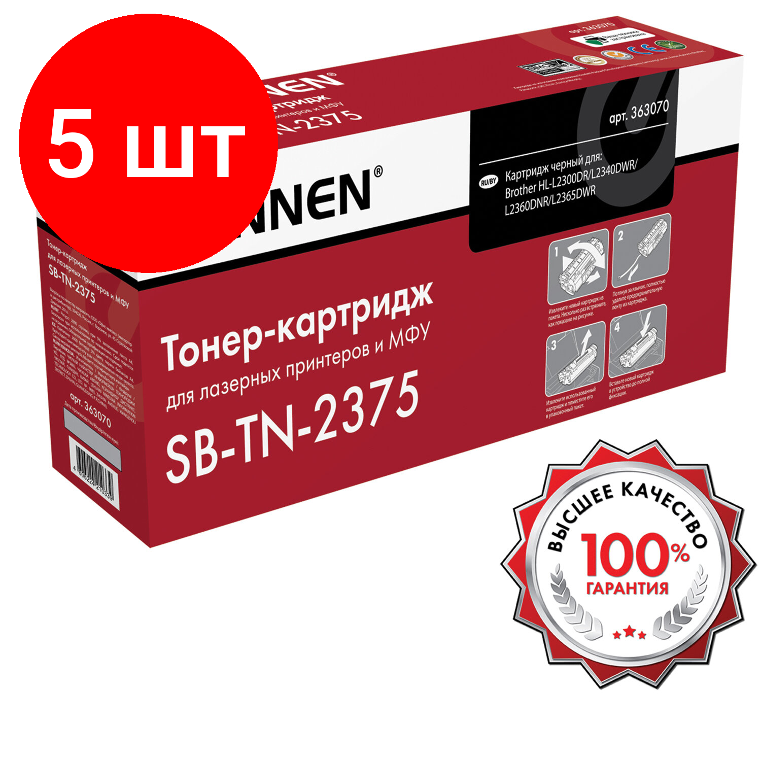 Картридж лазерный SONNEN SB-TN2375 для BROTHER HL-L2300DR/2340DWR/DCP-L2500, комплект 5 шт., ресурс 2600 страниц, 363070