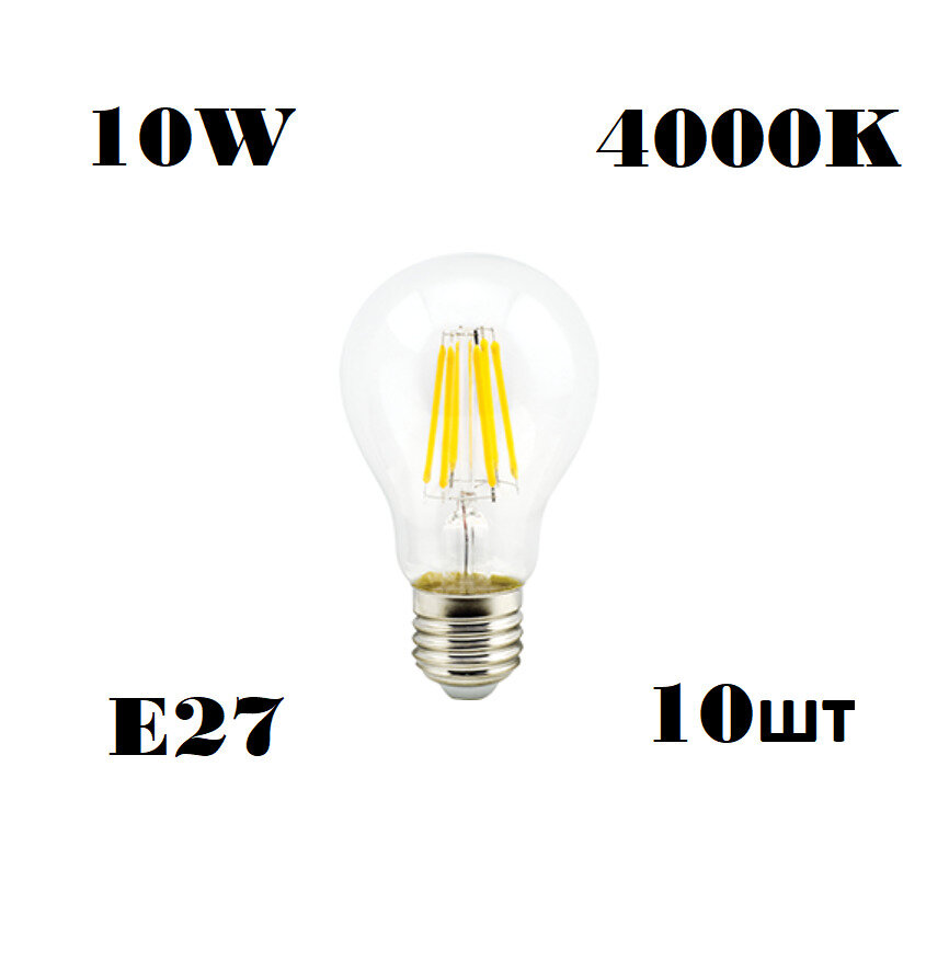 10 цен на Ecola ЛОН A60 E27 10W 4000K 4K прозр. 105x60 филамент (нитевидная) 360° Premium N7LV10ELC